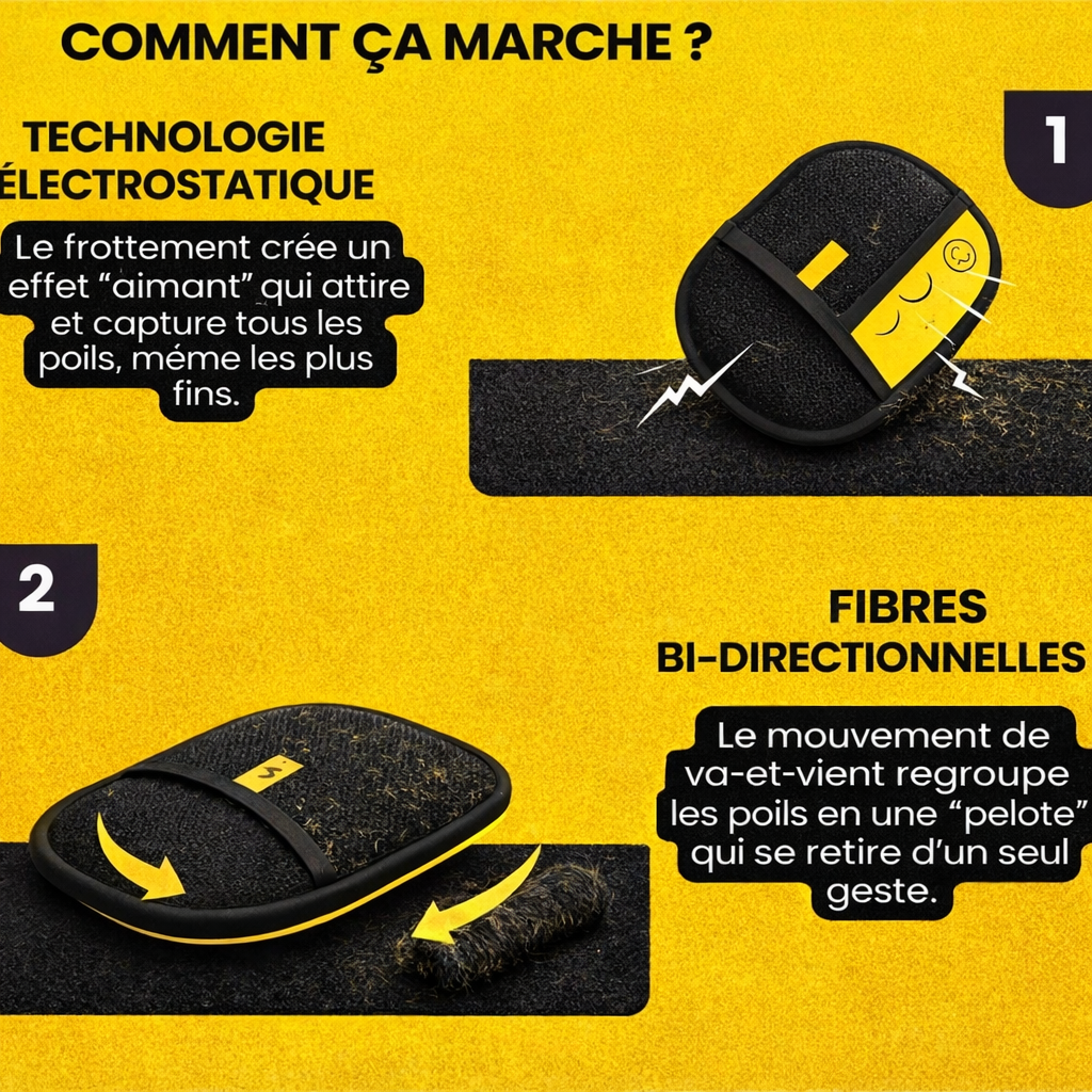 Designed for the daily life of pet owners, it combines cleaning, comfort and simplicity in a single accessory, transforming an often restrictive moment into a real moment of complicity. Each passage soothes your pet, gently removes hair, and gives you the satisfaction of a cleaner interior, without stress or effort. Because loving your companion also means taking care of him on a daily basis, this glove makes each gesture a reassuring, tender and naturally effective moment.